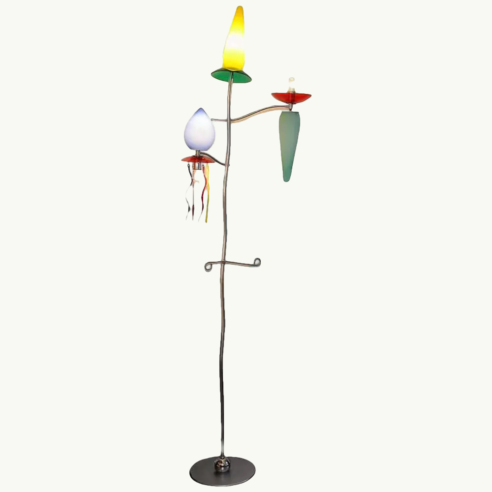 Giocasta is a decorative, elaborately designed floor lamp by Andrea Anastasio. The body is made of sandblasted chrome steel. The floor lamp is available with white glass bodies or multi-coloured. Wall, ceiling or pendant luminaires are also available from the series.